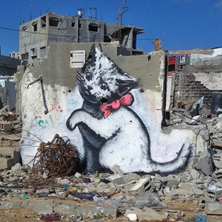 Aujourd'hui, c'est la police qui recherche ses œuvres volées et qui les protège. Les messages véhiculés par Banksy sont fondamentalement contestataires et pacifistes, contre la consommation de masse et les bombes... et toujours avec le recul nécessaire pour laisser place à son humour dévastateur. Ses sujets de prédilection : les rats, les singes, les policiers (justement !), les soldats, les enfants, les personnes âgées, la reine d'Angleterre...